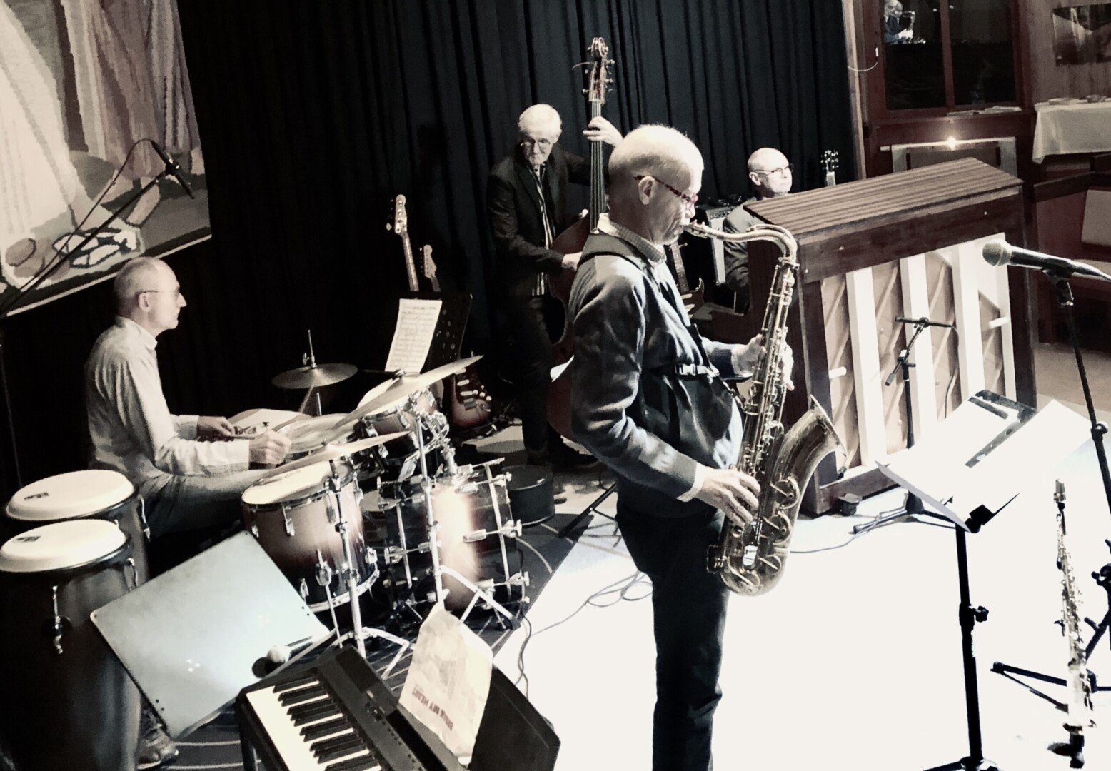15 okt 2020 Kulturkursen 15 oktober, 2020 Jazzkonsert på Solvik Kvartetten ”Tor Holmström och de daglediga” kom och gästade vår Kulturkurs i veckan. De bjöd på en sprakande konsert för våra deltagare. Till konserten bjöds det även soppa för de som var hungriga. Tack för en trevlig tillställning.
